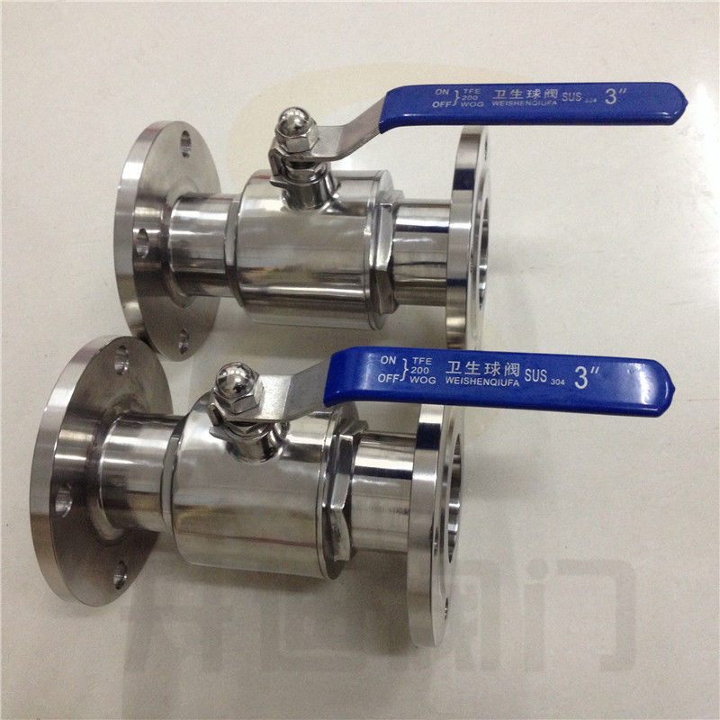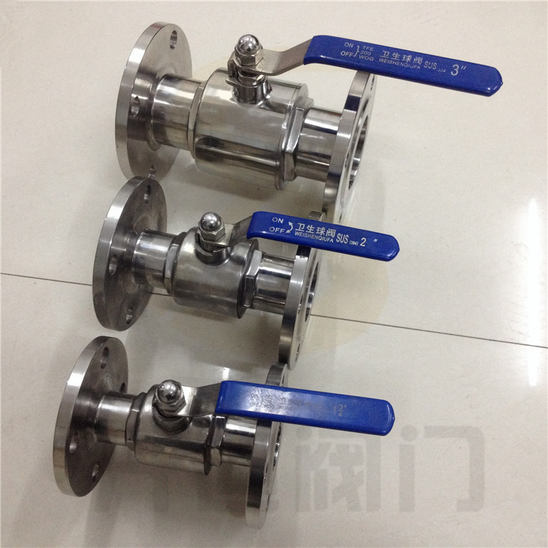 卫生级法兰球阀经过精密的检验流程和严格的品质管理。加工过程中,流道经过精密抛光和灭菌处理。密封圈为全封闭式紧紧包裹住阀球,无空间和死角。两端为螺纹连接方便拆卸、清洗、维修工作原理也是通过气动执行器90度的旋转来带动球体的旋转以达到介质的流通与阻断。