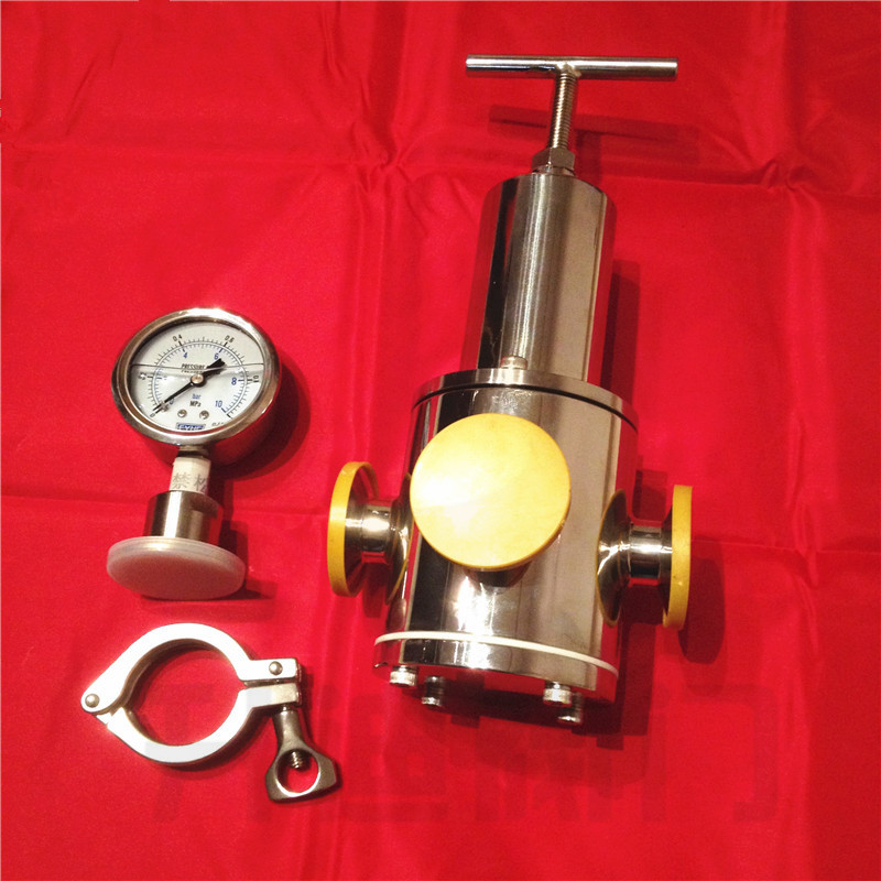 本公司生产的卫生级不锈钢减压阀,采用高精度数控精车及镜面抛光的加工处理方式,保证了阀门内腔及表面的卫生要求,同时两端采用卡盘快装连接方式,便于阀门的拆卸和清洗;另外此款减压阀出厂标配隔膜压力表,可对阀门出口端的管道实际压力值的减压要求进行调试和监测。