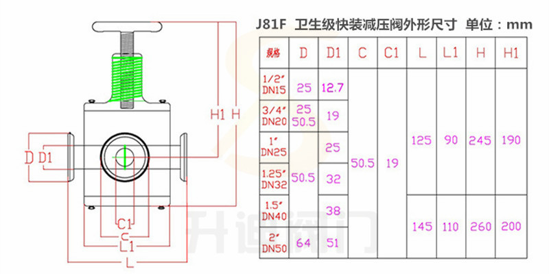 阀门规格:DN15~DN50mm(1/2"~2")