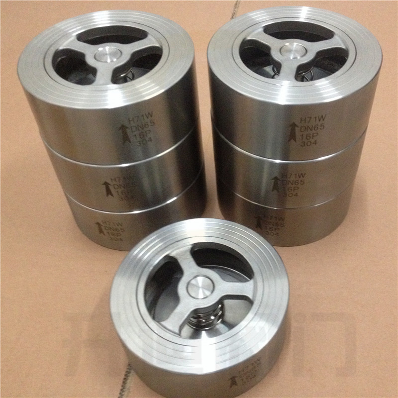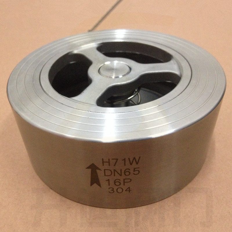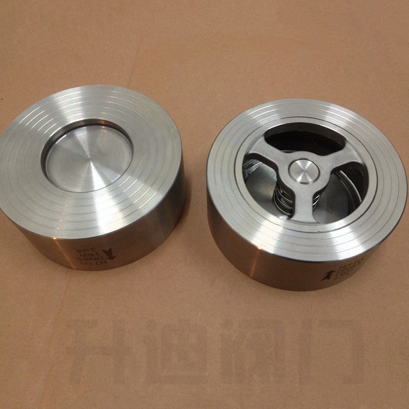 升迪H71对夹止回阀/不锈钢对夹式蝶型止回阀作用是只允许介质向一个方向流动,而且阻止反方向流动。通常这种阀门是自动工作的,在一个方向流动的流体压力作用下,阀瓣打开;流体反方向流动时,由流体压力和阀瓣的自重合阀瓣作用于阀座,从而切断流动。采用法兰对夹式连接,结构紧凑,阀瓣沿着中心定位作 升降运动,由于阀瓣的关闭行程短,并有弹簧加载,关闭速度快,可显著减少水锤现象。
